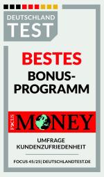 Das Prädikat „Top Bonusprogramm“ (im Hinblick auf die Kundenzufriedenheit) erhielten alle Anbieter, deren Wert über dem jeweiligen Branchendurchschnitt lag. Die jeweils am besten bewerteten Anbieter bekamen wiederum das Prädikat „Bestes Bonusprogramm“. Durchgeführt wurde die Untersuchung im Oktober 2025.
